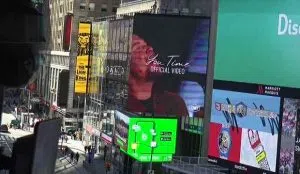 The same day Scotty McCreery‘s music video for “You Time” debuted on CMT Television, it also got its Broadway debut in New York City’s Times Square on a massive digital billboard. Seeing his own likeness that large Scotty said it was “Almost like being on a movie screen.”