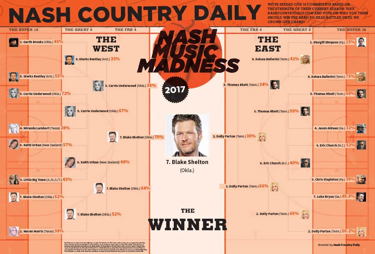 Blake defeated Maren Morris, Keith Urban and Carrie Underwood in Rounds 1, 2 and 3, and then he ran away with the championship by besting Dolly Parton in the Finals by more than 2,000 votes.